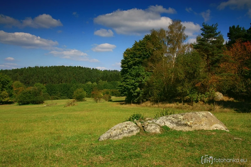 Skaliska a barevné listí vytváří působivou kulisu v údolí říčky Chřibské Kamenice.