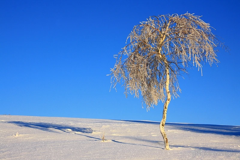 Tmavá dramatická obloha a v kontrastu zářivě bílý sníh. Počasí se stále mění.