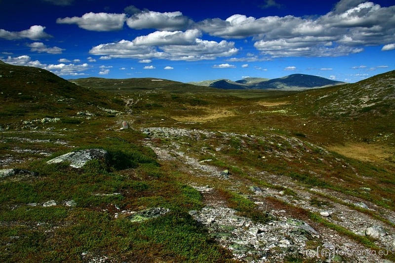 Do NP Rondane jsme vyrazili v jeho východní části. Zahalené kopce do mraků se nám co chvíli odkrývaly, někde ukazovaly svoji novou sněhovou čepici, ale převážně bylo zamračeno s přeháňkami. Krajina však nádherná. Mokřady, kleče, bílé lišejníky a ty výhledy...
