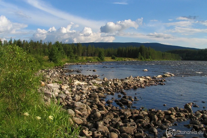 Typická severská příroda, mechová jezírka a štíhlé borovice a smrky o ty na severu není nouze.