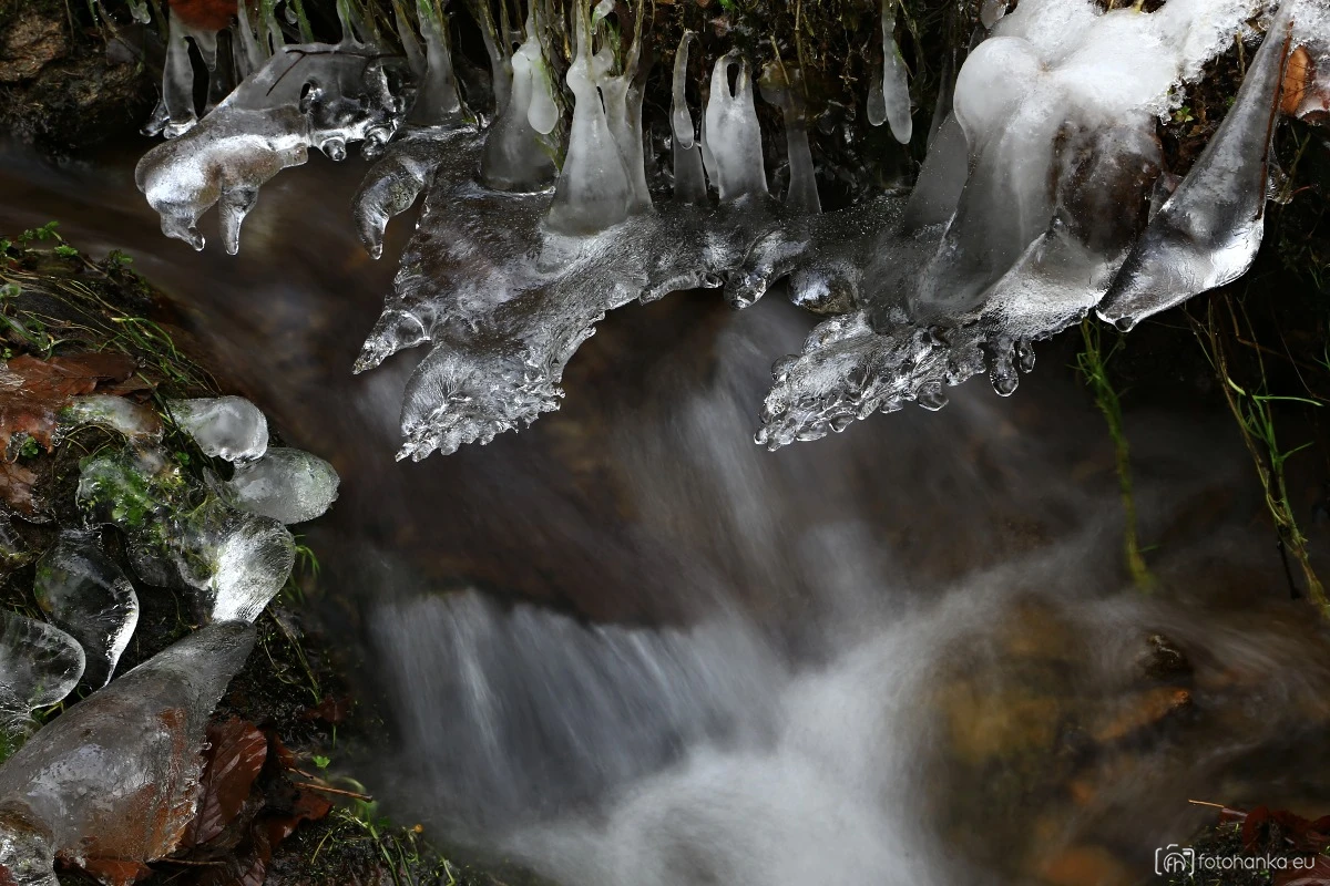 Krušnohorská nedělní vycházka nás zavedla k potoku, který byl nádherně ozdobený ledem.